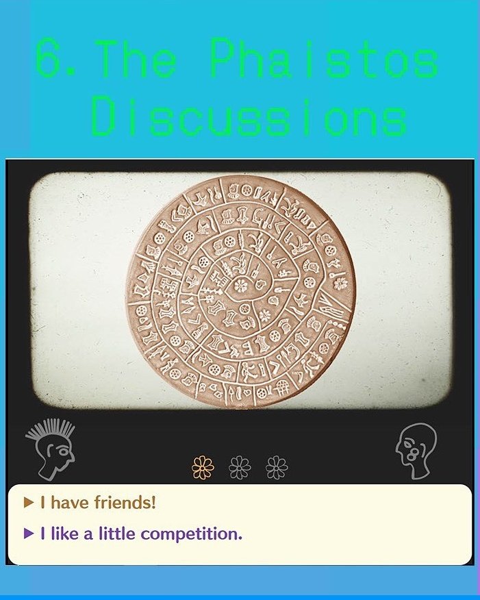 - The Phaistos Discussions was selected to take part in the Ultimate IndieMash Playful Competition, held by Sickhouse.
