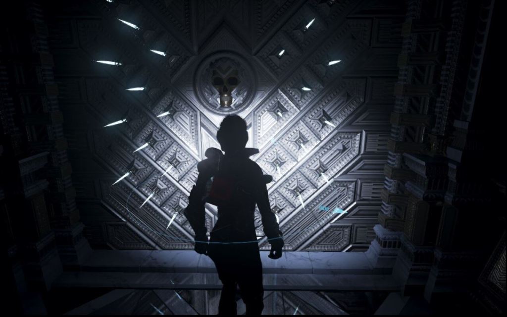 False doors like this have their echoes in the “doors for decoration” that Liz England mentions in video games. A fake door can be set-dressing to make a digital world feel bigger than it actually is. My favourite example of this is from the sci-fi stealth game ECHO, in which you traverse an endless palace on an alien planet. Also, funnily enough, you have to fight copies of yourself – a theme of doubling that it shares with Severance. The endless gilded baroque halls you wander often feature rows of identical doors, but of course you can’t enter them all. In ECHO, rather than the false doors just being inert, if you walk towards them the face adorning them will turn into a skull and luminescent spikes will unfurl. This dynamic response further creates the illusion of an inhumanely large space that could have countless secrets hidden behind closed doors.